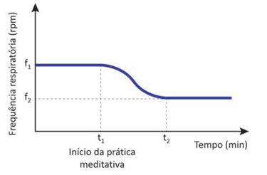 A partir do instante t1, em que se inicia a prática meditativa, o comportamento da frequência respiratória, em relação ao tempo,