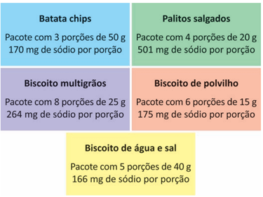 Uma estudante opta sempre pelo alimento com a menor quantidade total de sódio por pacote. Qual desses produtos deve ser o escolhido pela estudante?